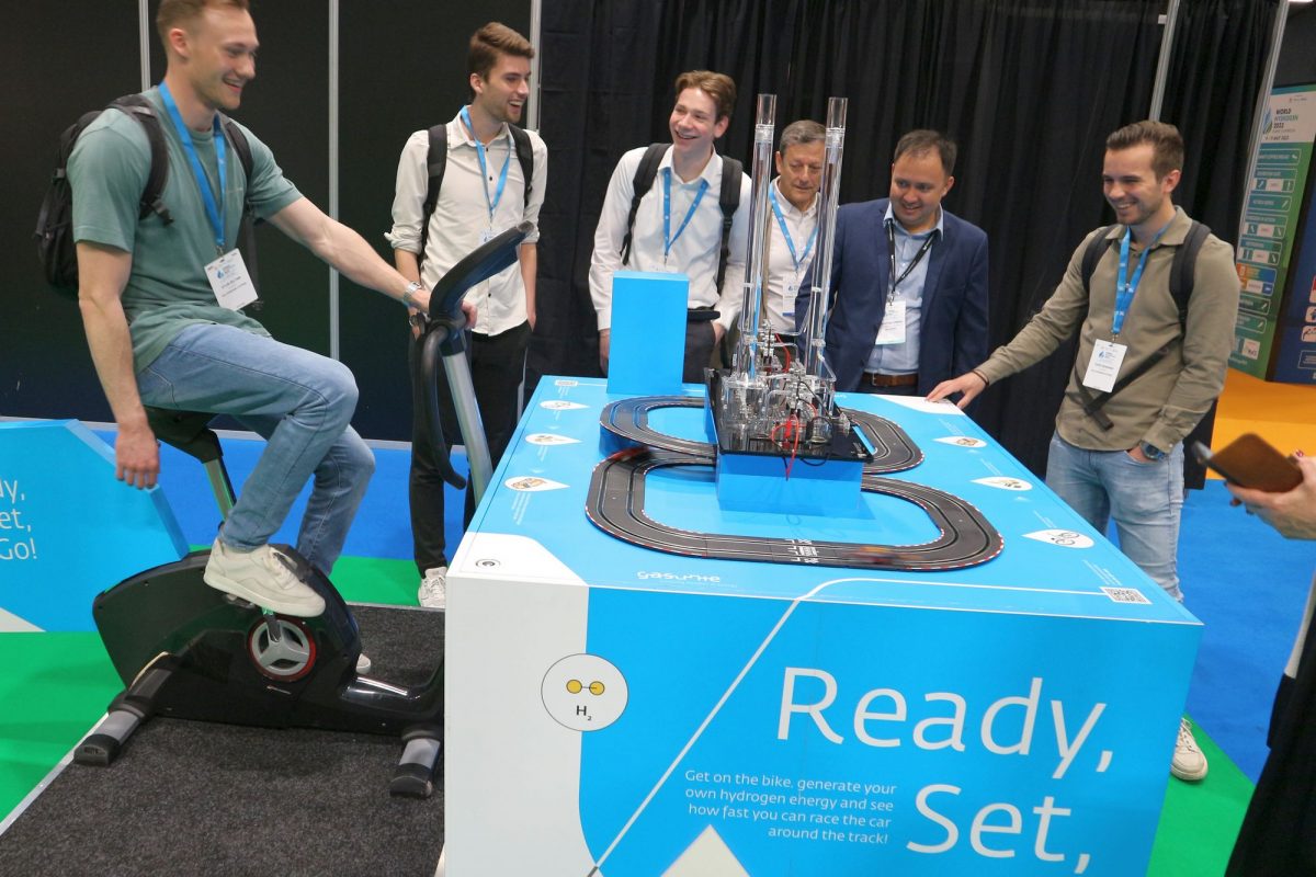 A hidrogénparádé két, jól elkülönített dimenzióban zajlott. Az emeleti konferenciatermekben gyűltek össze az öltönyös urak és kosztümös hölgyek, hogy felosszák maguk között a hidrogénalapú Szép Új Világot - ez volt a Summit. Ide nekünk, ágrólszakadt magyar autós és tech újságíróknak nem is sikerült bejutnunk; igazán szerencse, hogy nem is nagyon akartunk bejutni. Lent ugyanis, a nagy kiállítótérben közben zajlott a sokkal látványosabb, érdekesebb Exhibition, megtapogatható, körbejárható gépekkel, alkatrészekkel, járművekkel, a hidrogéntechnológia részleteiről faggatható szakemberekkel.