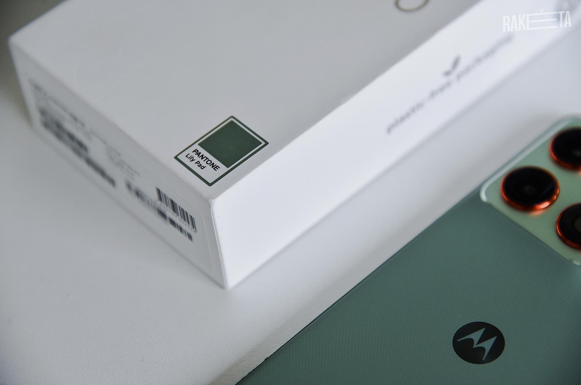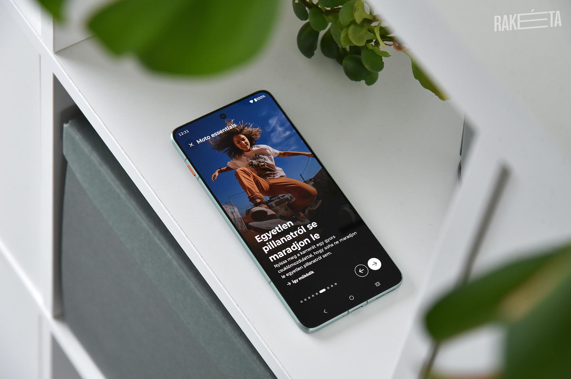 Kézbe véve a készüléket garantált a meglepetés, az 5,99 milliméteres vastagság és a 159 grammos tömeg mellett az Edge 70 szinte súlytalannak érződik. Az alumíniumötvözet váz masszív keretet ad neki, a hátlapot pedig egy kellemes tapintású, különleges textúrájú szilikonfelület borítja. A Pantone által válogatott árnyalatok, mint a Bronze Green, vagy a képeken látható Lily Pad a színes kameragyűrűkkel együtt végképp karakteres megjelenést kölcsönöznek neki. Ne tévesszen meg a kecses külső, az IP69-es besorolás, a MIL-STD-810H katonai szabvány és a Gorilla Glass 7i védelem gondoskodik róla, hogy ne kelljen hímes tojásként bánni vele.