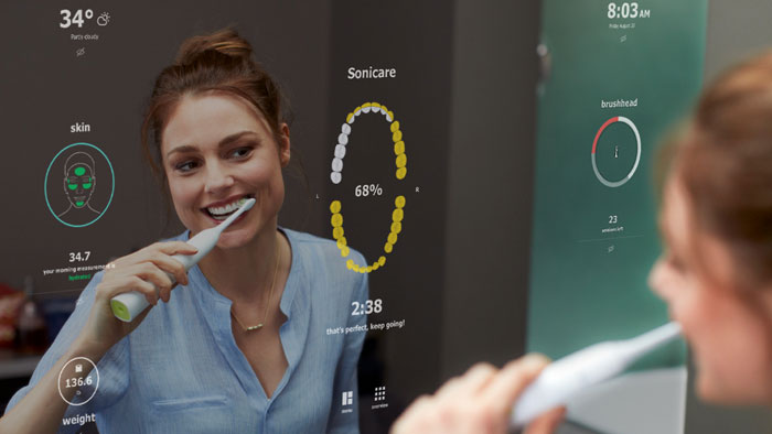 Mikor Murdoch kiment a fürdőszobába, hogy megmossa a fogát, a mosdó feletti tükrön egyből megjelent a fogsorának digitális mása, és a hozzá kapcsolódó felirat figyelmeztette, ha nem elég erősen sikált, vagy ha kihagyott egy részt. A kísérlethez azt a high-tech okostükröt használták, melyet a Philips a 2018-as CES-en mutatott be, bár akkor még csak amolyan kuriózumként tálalták (mint a CES-en oly sok mindent mást is), amelyet forgalomba hozni egyelőre nem szándékoztak. A tükört a mögé rejtett monitor okosította fel, amely, ahogy a videón látszik is, nem működött teljesen kielégítően, ugyanis a bonyolultabb funkciók, mint amilyen a különböző szakálltípusokat a felhasználó arcképével kombináló alkalmazás elég halványan látszott, ezzel együtt érdekes lehetőségeket rejtett a mindenféle okoseszközzel, fogkefével, borotvával, mérleggel összepasszintható tükör ötlete.
