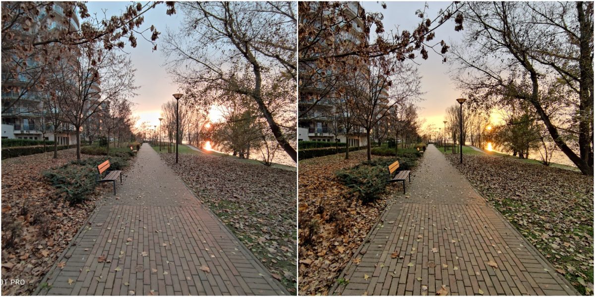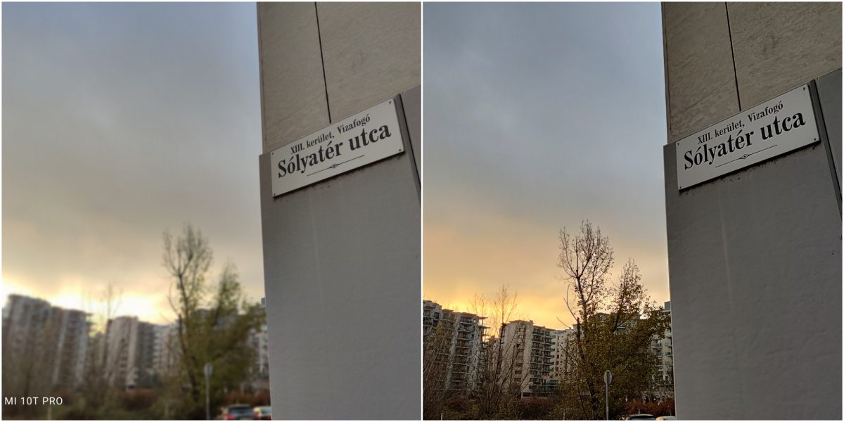 Ebben a kategóriában jól jön, hogy a OnePlus 8T kicsit túlszaturálja a képeket, mert bár az Mi 10T Próval készült fotó közelebb áll ahhoz, amit a valóságban látunk, a 8T-vel készített kép kétség kívül hangulatosabb, vagy azt is mondhatnánk, hogy Instagram-kompatibilisebb. Ez mondjuk csak az összképre igaz, hiszen az itt is meglátszik, hogy az Mi 10T Pro sokkal világosabb képeket készít, a sötétebb részek így sokkal kivehetőbbek a képeken.