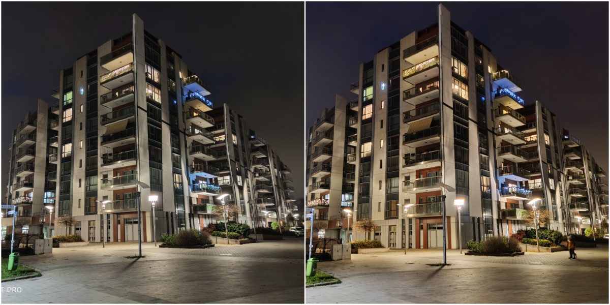Itt látszik meg igazán a két telefon főkamerájának a különbsége, hiszen a Xiaomi Mi 10T Pro a 108 megpixeles kamerának köszönhetően sokkal több fényt tud egyszerre begyűjteni a pixelek egyesítésével. A fotókba belenagyítva egyértelműen látható, mennyivel részletesebb képeket készít a Xiaomi telefonja, ez az előnye pedig akkor is megmarad, ha éjszakai módban fotózunk. Az Mi 10T kamerája ebben a kategóriában is kiemelkedik, hiszen nem csak a OnePlus 8T-hez, de a Galaxy S20 FE-hez képest is jobb fotókat készít.