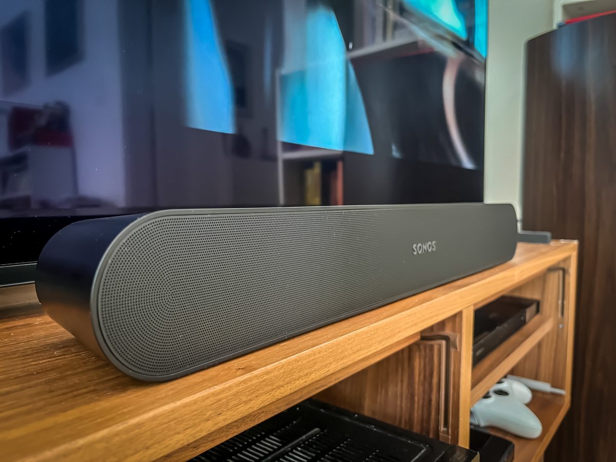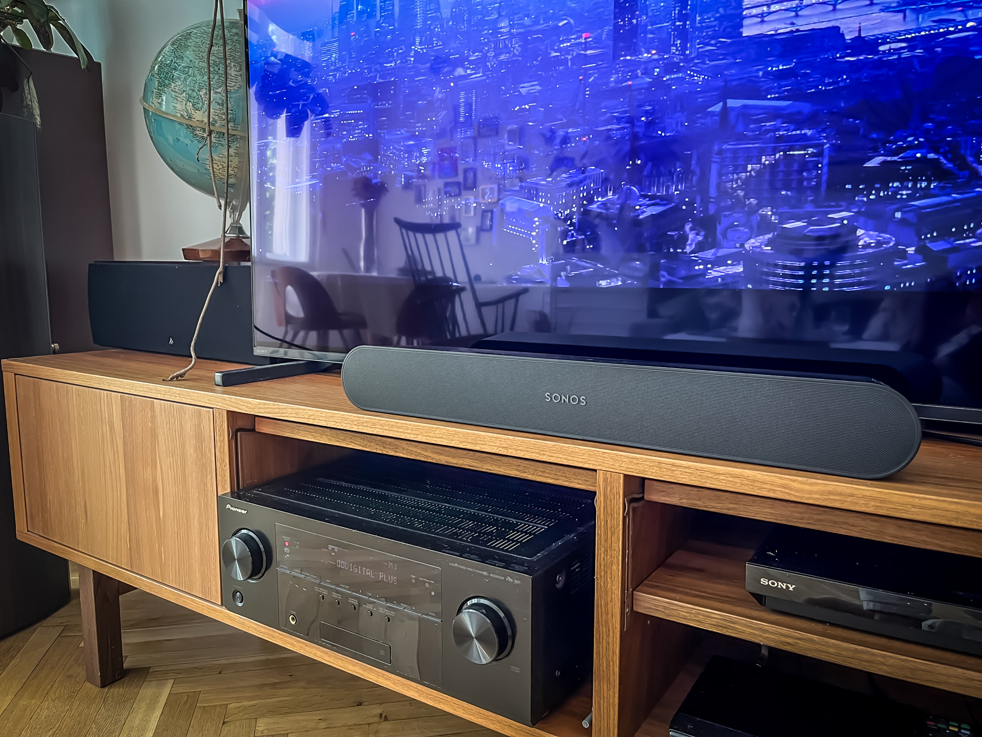 Tehát egy hete ott ücsörög a tévém előtt-alatt egy, a Sonostól megszokott minőségű, vagyis kimunkált, ízléses, diszkrét soundbar. Miután megérkezett, gyorsan elindítottam a legutóbbi Bond-filmet, viszonylag halkan, majd kimentem a konyhába. Ott is voltam egészen addig, amíg az épületet meg nem rázta a halott Bond-lány síremlékébe rejtett bomba. A Ray ugyanis olyan erővel szólalt meg, hogy gyorsan le kellett ellenőrizzem, hogy nem a régi, lényegesen nagyobb hangfalaimat hallom-e. De nem. Amikor véget ért a film, két gombnyomással átkapcsoltam zenét lejátszani, és az élmény ugyanez volt: hiába a kategóriához képest apró méret, bőven betölti a nappalit a hang. Ráadásul a meglévő, konyhai Sonos hangszóróimmal gyönyörű összhangban szól minden, követ a zene a lakás felében, ami nekem új, és egyáltalán nem rossz érzés. A harmadik, és talán legfontosabb dolog, amire kíváncsi voltam, hogy mennyivel jobb az élmény, mint a Sony A83J beépített, gyakorlatilag soha nem használt hangszóróival. Egy perc sem kellett hozzá, hogy kiderüljön: sokkal. Az akciófilmek még hagyján, de egy sima stand-up show is egy nagyságrenddel jobban él a Ray-en, mint a tévén keresztül. A gyártó emellett kiemeli, hogy a nagyobb, a hangot több irányba sugárzó, Dolby Atmos-képes soundbarokkal szemben a Ray simán elsüllyeszthető a tévészekrényben anélkül, hogy az ártana a hangzásának.
