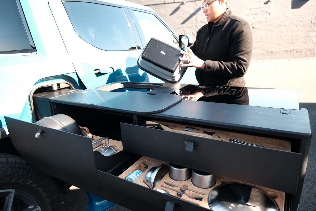 A The New York Times beszámolója szerint az R1T-ben emellett található egy 18 hangszórós hangrendszer, amelyek közül az egyik kivehető és Bluetooth-hangszóróként is használható, egy 16 colos érintőkijelző, 5000 dolláros felárért pedig a hátuljába egy "tábori konyha" is kérhető, amiben két induktív főzőlap és mosogató is található.