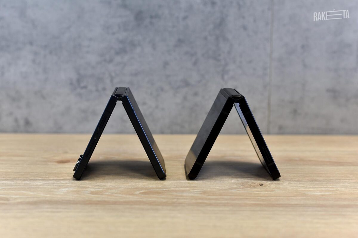 Most először kétféle Flip-telefont is bemutatott a Samsung. Az új Z Flip7 mellé ugyanis érkezik a Z Flip7 FE, az előző generáció átfésült változata, azaz már hajtogatható telefonok kategóriájában is van jó áron értéket adó modellje a Samsungnak. A két készüléket egymás mellé téve számottevő a különbség, hiszen a Z Flip7 vastagsága 14,6-ról 13,7 milliméterre csökkent félbehajtva, és a kinyitva mért 6,5 milliméteres vastagsága is kellemes érték. A Flip-széria újdonsága összehajtva 75,2 x 85,5 milliméteres, kihajtva 75,2 x 166,7 milliméteres.