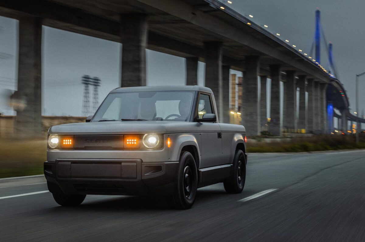 A kompakt méretű, 4,43 méter hosszú pick-up alapmodelljében a hátsó kerekeket 204 lóerős elektromotor hajtja, az alapáron adott 52,7 kilowattórás akkumulátorral pedig 240 kilométer a hatótávja. Akinek ez nem lenne elég a napi útvonalára, annak egy nagyobb, 84,3 kilowattórás akkucsomag is elérhető, ami 380 kilométerre növeli a hatótávot. A Slate pedig még több célra lesz használható a jövőben, ha megérkezik a kétmotoros, összkerék-meghajtású változata, amivel könnyebb terepjárásra is alkalmas lehet.