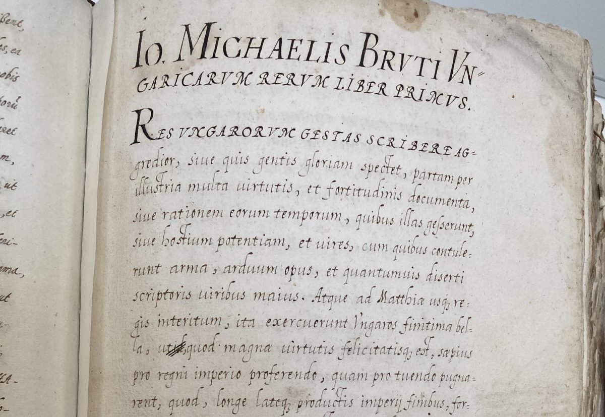 A velencei heterodox emigráns Gian Michele Bruto (1517–1592) 1574-től Báthory István történetírója volt Gyulafehérváron, majd 1576-tól Krakkóban, itt írta kézzel ezt a hatalmas terjedelmű magyar történeti művet. A munkával Bonfini , Mátyás Király történetírójának Decadesét szerette volna folytatni, Rerum Ungaricarum libri címmel egyetlen összefüggő narratívába foglalva a három részre szakadt ország hanyatlásának évszázadát, Mátyás király halálától kezdve, Mohácson, Buda és Szigetvár elvesztésén keresztül Báthory István erdélyi fejedelemmé választásáig.