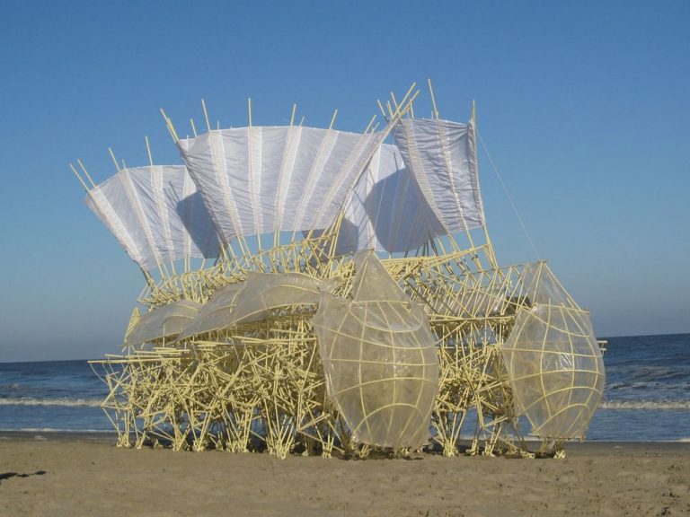 A kreatív holland alkotóművész Theo Jansen már a kilencvenes évek óta épít műanyagcsövekből és vászonból robotszerű, kinetikus alkotásokat, melyeket a szél ereje mozgat.