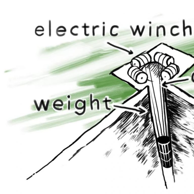 A megújuló forrásokból származó energiát akár másfél kilométerre leengedhető, több ezer tonnás súlyokban tennék el szűkösebb időkre.