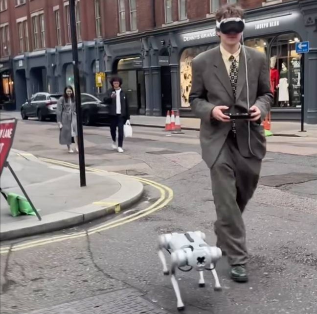 Disztópikus jelenetnek lehettek szemtanúi Londonban a járókelők, amikor egy robotkutya-tulajdonos úgy döntött, hogy VR-sisakkal viszi sétálni kedvencét.