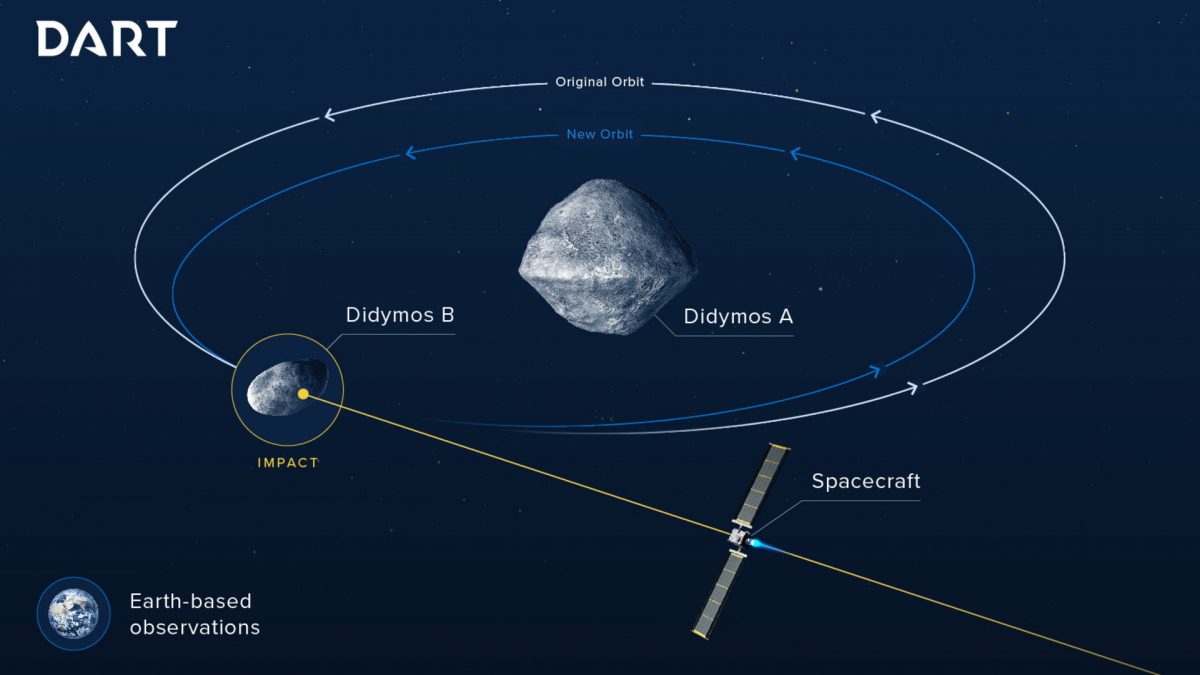Az aszteroidák megfigyelése a védekezés első fázisa, de a tragédia megakadályozásához valahogy el is kell hárítani a fenyegető veszélyeket. Ezen lehetőségek feltérképezését a NASA már korábban megkezdte, 2022-ben pedig elvégzik az első éles tesztet is. A DART (Double Asteroid Redirection Test, avagy dupla aszteriodaeltérítő teszt) program keretében az űrügynökség egy szondát vezet bele a Dimorphos aszteroidába, ami a Didymos körül keringő kisebb égitest, kvázi a nagyobb kisbolygó holdja. A projekten mérnökként dolgozó Elena Adams elmondta, hogy a 2021. július 22-én induló küldetés során számos új technológiát demonstrálnak, például a kifejezetten aszteroidaküldetésekhez kifejlesztett, kis energiájú Next-C ionhajtóművet, a rendkívül kis tömegű, feltekerhető ROSA napelemeket, az automata SMART navigációs rendszert és a DRACO képalkotó műszert. A tervek szerint az aszteroidát megközelítve az 500 kilogrammos DART másodpercenként hat kilométeres sebességgel csapódik bele a Dimorphosba, egy időre eltérítve az eredeti pályájáról az égitestet. Az ütközés előtt a DART kioldja az olasz űrügynökség által készített LiciaCube nevű mikroműholdat, amely fotókat fog visszaküldeni a Földre.